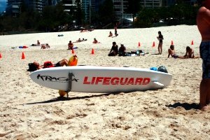 라이프가드들도 나갈때 서핑을 하나봐요. 보드가 있더라구요.