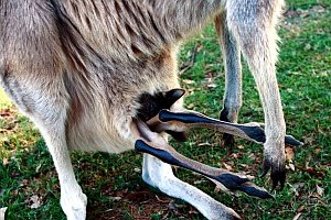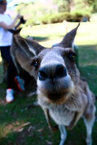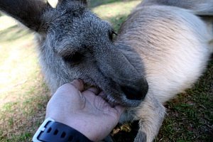 새끼를 갖고 있던 캥거루! 운이 좋았어요. 저 캥거루는 만지지도 않고