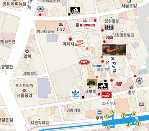 짜잔, 명동의 스포츠브랜드샵 지도입니다:@