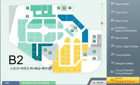 스포츠의류와 프리미엄 진 매장들은 지하 2층에 있답니다