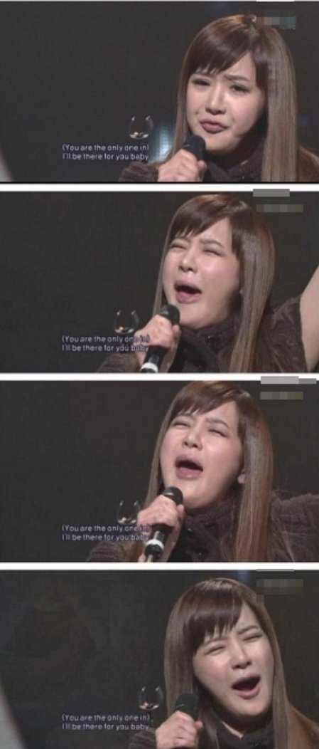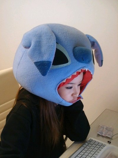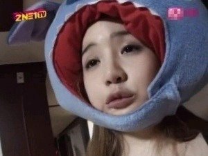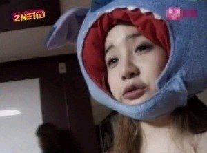 커다란 괴물곰퉁이 탈을 쓰고 진지하게 모니터에 응시하는 박봄!![]()