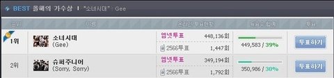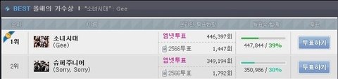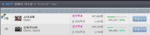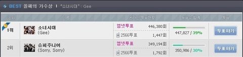 투표하기눌러도 안올라갔다고 합니다. 그런데 그사이 소시분들은 쭉쭊쭊쭊쭊쭊 올라갔죠?