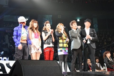 베스트 아시아 상을 시상하는 신인상의 주인공 2NE1과 슈프림팀입니다!!!