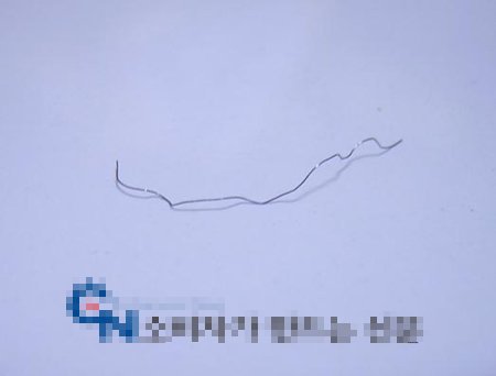 템포에서 나온 것은길이 2㎝ 정도의 철사로 보이는 이물질이었다. 최 씨는 얇고 구불거려서 체모인가 했으나 손으로 만져본 뒤 금속성 이물질임을 확인했다.
