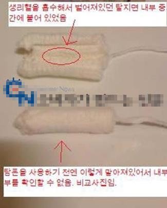 체내 삽입형 생리대에서 철사로 보이는 이물질이 나와 소비자들을 불안하게 하고 있다.