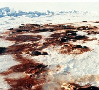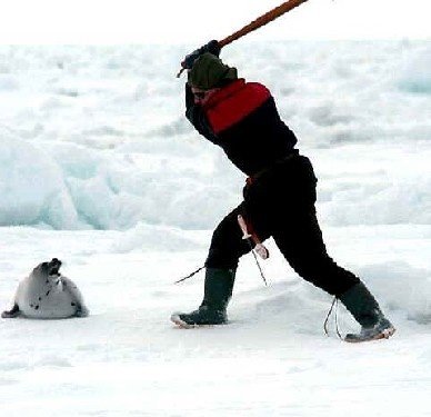 하프물범이 보이면 캐나다인들은 쇠몽둥이를 들고 하프물범의 머리를 있는 힘껏