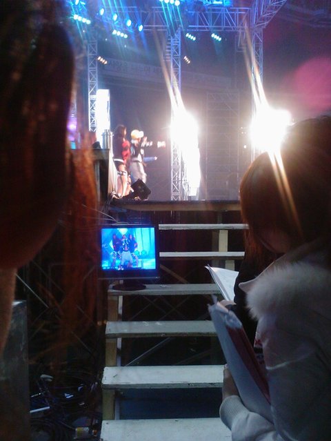 이제 무대에 오르는 막내들!!! 전 쌩얼이라 사람들이못알아볼까봐 스탭 목걸이햇어요!!!^.^ 이제 무대뒤! 랙잭이들 티비앞 꼬고!!! 빨리요!!!꺅!^.^