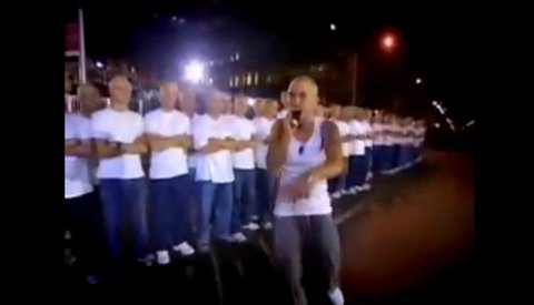역시 에미넴과 닮은 꼴 사람들 여러명이 에미넴의 뒤에 서있습니다.