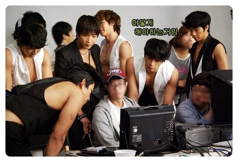 촬영한 뒤 모니터를 꼼꼼하게 살피는 우영군. 다른 멤버들은 어떤 표정을 짓고 있을까?
