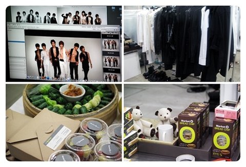촬영장 뒷 모습이에요. 2PM의 사진이 가득한 모니터...