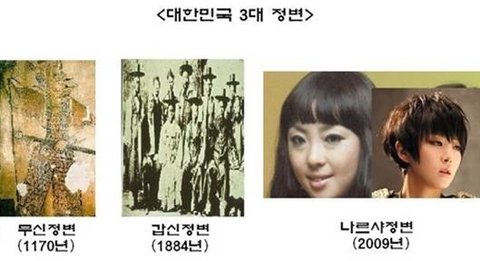 1170년 무신정변, 1884년 갑신정변, 2009년 나르샤 정변입니다.ㅋㅋ