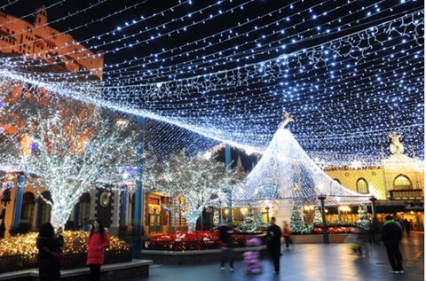 건물이며 나무, 놀이기구 등에도 화려한 전구들이 불을 밝혀주고 있어요><
