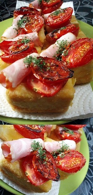 요건 두부 카나페인데 두부 튀김옷을 만들때 치즈가루랑 섞어서 튀겨주심 아주 맛나요. 미니 토마토는 소금과 블랙페퍼 휙 뿌려준뒤 오븐에서 구운뒤에 슬쩍.