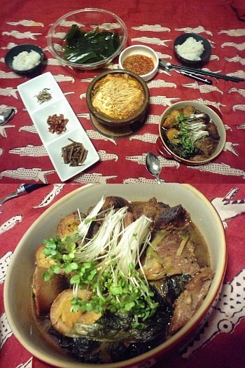 오랜만에 한국에서 어머니가 보내준 된장으로 보글보글 된장찌개 끓여서 같이먹는데