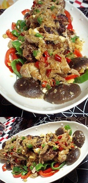생강 얇게 채썰기해주고 닭다리랑 청주,간장에 재워놨다가 튀긴후에(꼭 두번!!)