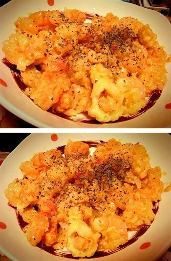 남은 기름이 아까워 만든 텐뿌라도 일품. 유즈(유자)퐁즈에 찍어서.