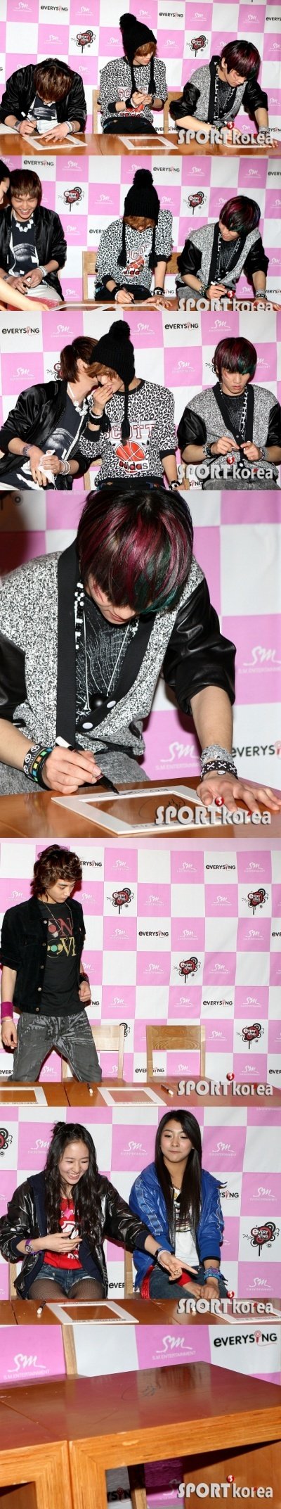 키는 이날 핸드프린팅에 앞서 액자 겉 부분에 사인을 해야하는 상황, 너무 긴장한 나머지 액자 가운데 뚫린 부분으로 보이는 책상에 혼자 사인을 했다.
