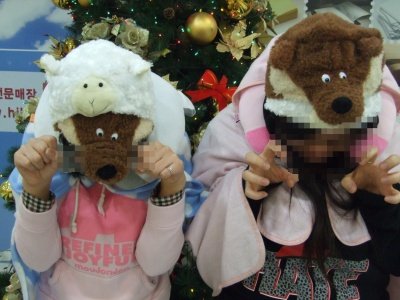친구랑 함께 램램울쁘모자 쓰고 놀아보았어요~ ㅋㅋ