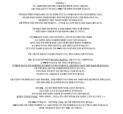 서울대학병원 어린이병동에서 일하시는 분이 2PM이 왔다갔다고