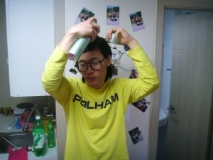 헐ㅋ.ㅋ 이생키 멍청한자슥이 옷도 안갈아입고 머리만졌어요.