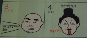 이렇게 캐릭터로 예쁘게 표시되어 있고, 무한도전 멤버들의 생일도 표시되어있어요