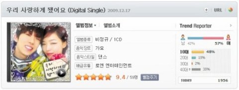 바로 조권과 가인의 우리 사랑하게 됐어요~!가 빠르게 앨범 차트 상위권을