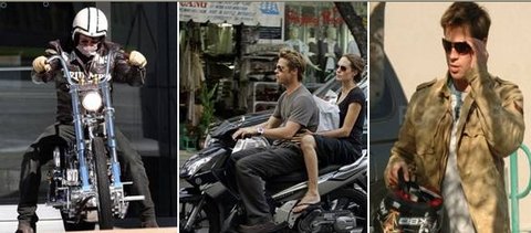특히 유명한 파파라치 컷으로 잘 알려진 위 사진에서 브래드 피트가 타고 있는 바이크는 그 유명한 쵸퍼! 같은 쵸퍼 라이더들을 기 죽이는 브래드 피트 특유의 포스가 종종 카메라에 잡히곤 한다.