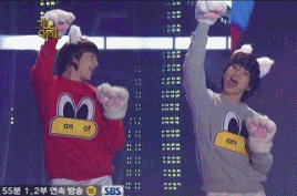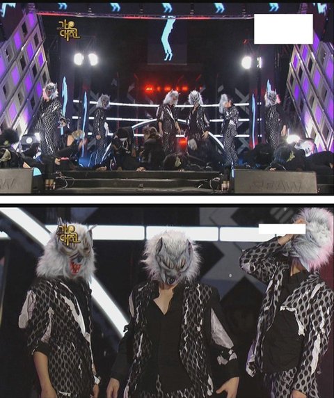 가요대전에서 멤버들 다 쓴 탈을 혼자 못써서 낑낑대는 옥택연ㅋㅋㅋ