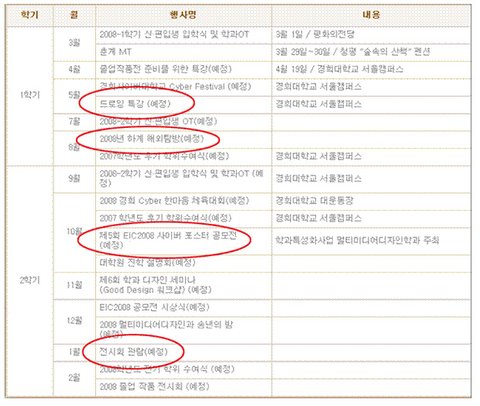이제 2008학년도 ‘멀티미디어학과’ 수업 내용인데요,