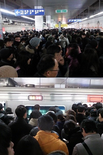 머리털 나고 살면서 이렇게 많은 인파가 지하철에 몰려있는 것은 처음봤습니다