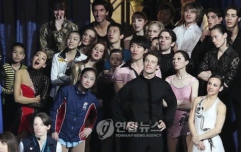 연아에게 거는 기대, 연아를 바라보는 시선들이 빙판위에 빼곡히 차있습니다.