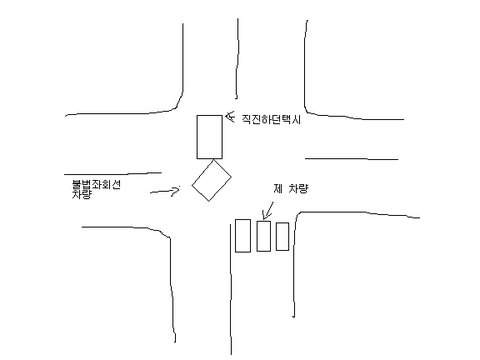 그 불법 좌회전 하던 차량은 직진을 하던 택시와 그대로 충돌이 일어났고, 충돌하면서 그 택시가 정차해 있는 제 쪽으로 돌진해 오는것이였습니다.