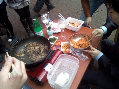 당초 계획은 신문을 깔고 앉고 그 위에서 먹을 예정이었지만 신문을 쉽게 구할 수가
