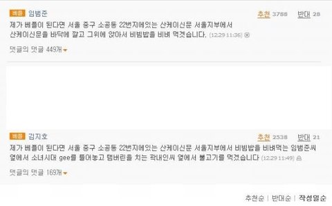 '무도' 비빔밥은 1차 광고..불고기·막걸리도 있다http://news.nate.com/view/20091229n0754이 기사에서 저는 돌이킬 수 없는 발언을 했습니다.
