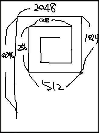 이런식으로 (0,0) 에서 위로 4096 이동 후 오른쪽으로 그 1/2 ,