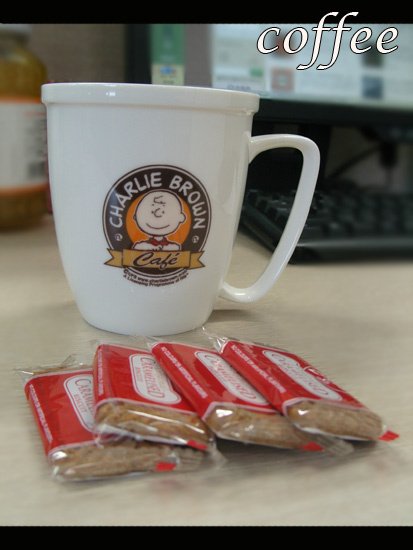 내 책상 위에는 언제나 따뜻한 커피 한 잔과 커피 과자가.