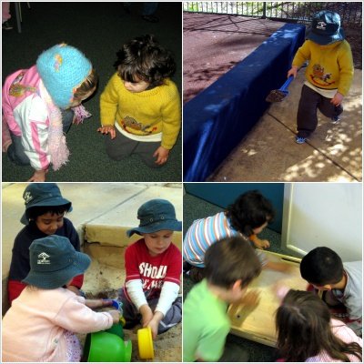 유치원 뒷마당에서 아이들이 뛰어놀고 있는데