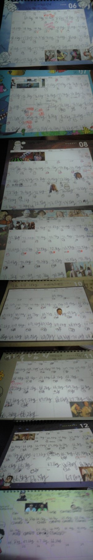 달력에나 운동한날은 동그라미로 체크하구요 거기다 몸무게하루하루마다적으니깐요