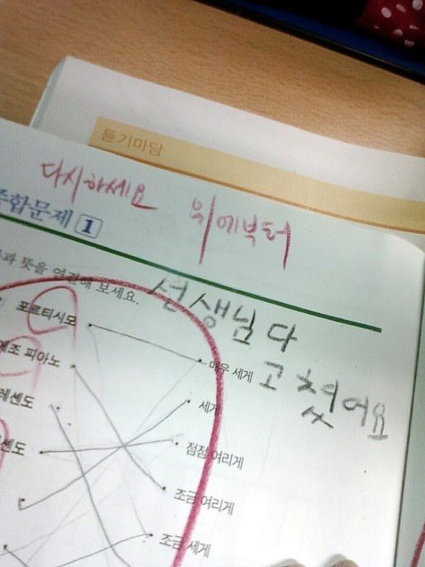 멀리서 수정이가 쭈삣쭈삣 걸어오며 '선생님~ 이것좀 봐주세요' 하는거에요