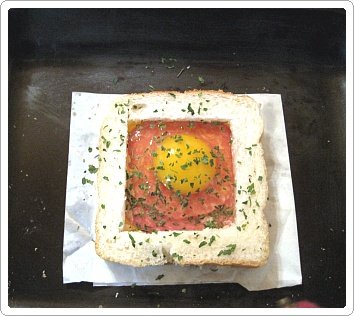 참~~!! 이때 식빵 테두리 부분엔 쏘스를 종더 발라주세요 ~!!!