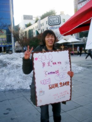 첨엔 '솔로분들 커피드시고 가세요' 로 시작해