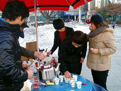'여러분 공짜로 커피드시고 가세요'