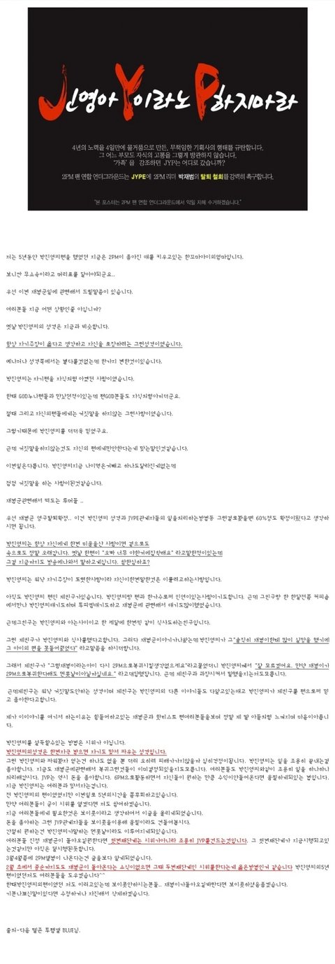 이제 조금 있음 재범(군)이가 스스로 원하지 않았다는 박진영(님) 드립만 들려오면 그걸로 게임 끝입니다.