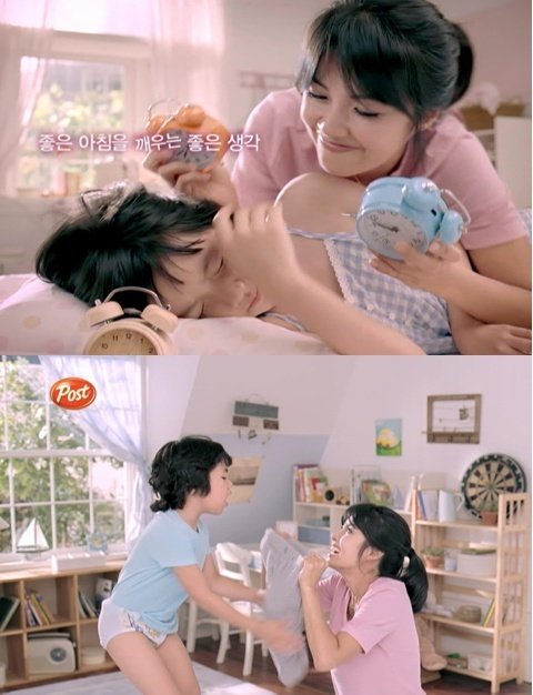 실제 CF 촬영 현장은 리얼한 연출을 위해 조용하기 때문에 아들 역인 차재돌 군은 촬영 중 진짜 잠이 들어버려 신애라가 깨워가며 촬영을 진행했다고 하는데요. 유희왕 카드를 무려 100장을 주겠다고 약속한 뒤, 재돌군은 유희왕 카드를 위해 끝까지 촬영에 최선을 다했다고 하네요.