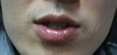 음.. 입술 밑 부분은 조그마한 딱지가 있긴 했지만..