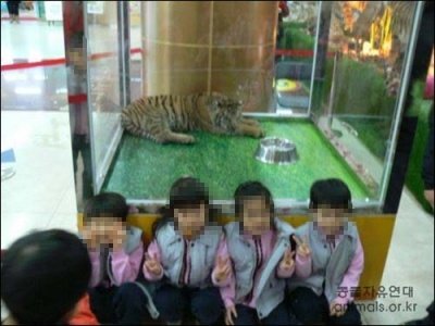 서울 노원구청이 자연사박물관 유치를 위해 살아있는 호랑이 두 마리를 2m 유리상자 안에 가둬 놓고 한달째 전시하고 있다는 보도다. 구청 1층 로비에 몸 길이 1m가 넘는 야생동물을 가로·세로 2m짜리 아크릴 상자에 집어 넣고 이곳을 찾은 주민들이 가까운 곳에서 관람할 수 있게 해놓았다는 것이다.