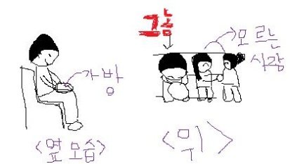그 가방을 무릎위에 올려놓고 왼쪽사람들한테는안보이게, 오른쪽(제가 앉은쪽)에서는보이게 슬며시 드는거에요