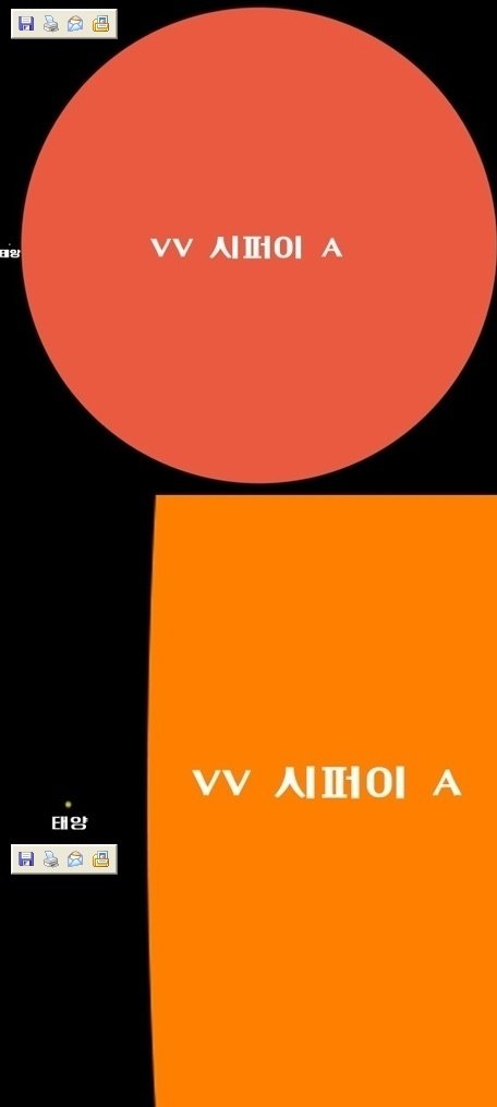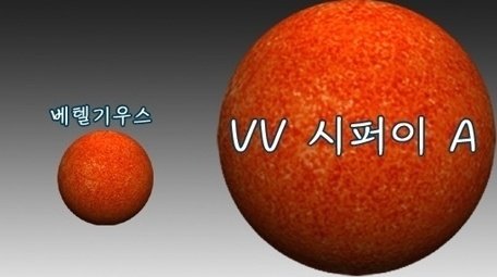 VV Cephei A(VV 시퍼이 A) 는 한때 발견된 별들 중에 가장 크기가 큰 별이며 지구에서 8140광년 떨어져 있다고 합니다.