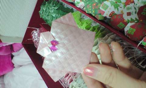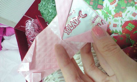 중간에 크리스마스 느낌나는 흰색 빨간색 초록색 포장지로 만든 하트쏠라씨!!!하트를 하나하나 접어서 그 안에 쏠라씨를 넣어주는 형태입니당..ㅎㅎ생각보다 만들기 쉬웠어요 하트쏠라씨는~