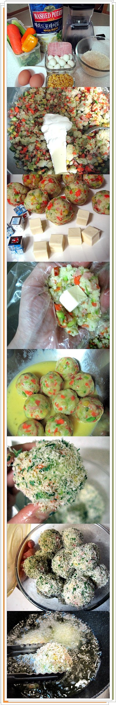 메추리알 치즈 넣고 모양 만든 뒤 계란물과 빵가루 꾹꾹 눌러서 입혀주세욤~
